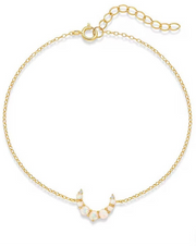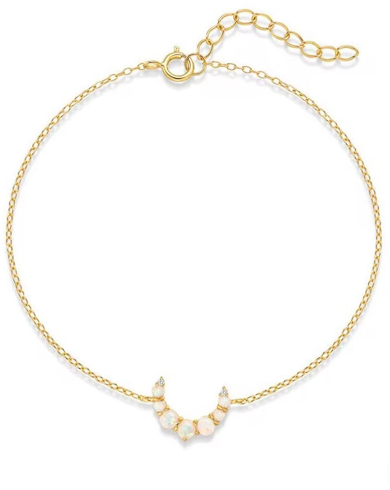 Deze delicate armband is voorzien van een natuurlijke opaalsteen in een maanvorm, met een zachte, melkachtige glans en subtiele kleurspelingen. Opaal wordt vaak geassocieerd met creativiteit, emotionele balans en inspiratie, waardoor deze armband niet alleen elegant is, maar ook een betekenisvolle toevoeging aan je sieradencollectie.